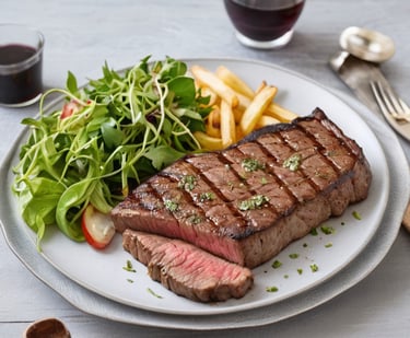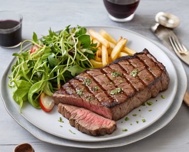 Plat principal: Un steak de 100g assaisonné avec des herbes de Provence,